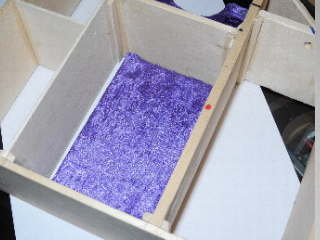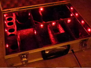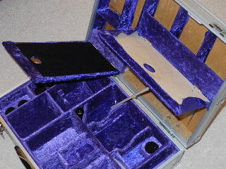 velvet and LEDs installed. Applying the velvet was hard work. The left to right